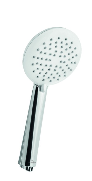 Moderní ruční sprcha v bílém/ chromovém provedení. Má až 3 druhy proudu a anti-calc systém zajistí plný komfort používání. průměr 10 cm