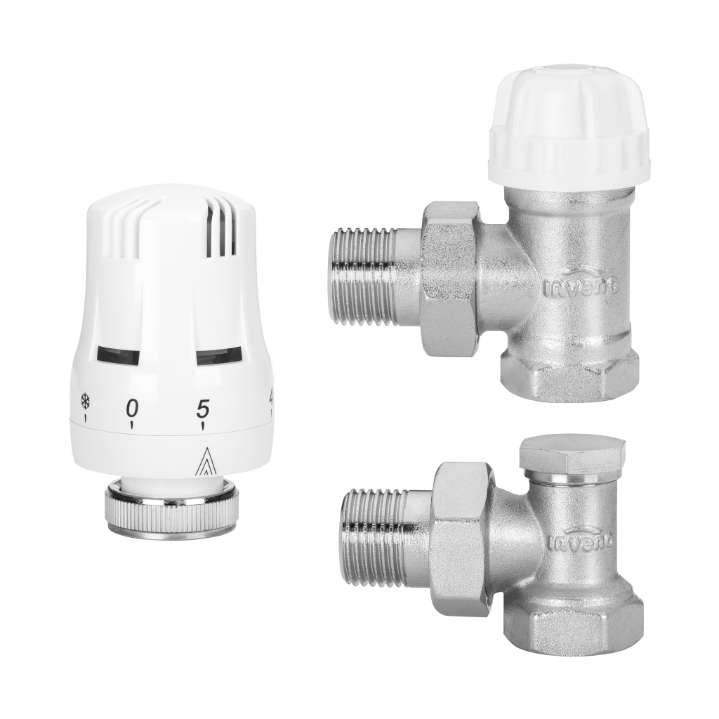 pro připojení radiátorů v systému ústředního vytápění z ocelových trubek. Rozsah nastavení teploty: 6-28°C. Ventily z poniklované mosazi, šroubové spoje opatřené O-kroužkem, ventily kompatibilní s ostatními hlavicemi z nabídky INVENA