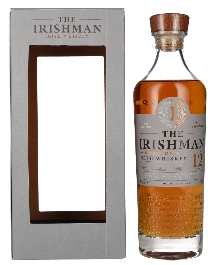 The Irishman Single Malt 12yo je výrazná irská whiskey, která přináší bohatou chuť díky exkluzivnímu zrání v prvním plnicím, plamenem vypáleném sudu po bourbonu. Poprvé představena v roce 2013 palírnou Walsh Whiskey, tato 12letá single malt whiskey se v roce 2022 dočkala rebrandingu a znovuuvedení na trh, čímž získala nový život a svěží design. Zrání v sudu po bourbonu přináší whisky hluboké tóny vanilky, dřeva a karamelu, které jsou doplněny jemnými doteky koření a sladkosti. The Irishman 12yo je skvělým příkladem irského destilačního řemesla, které kombinuje tradiční postupy s moderním přístupem. Chuť: Bohatá a komplexní s tóny vanilky, karamelu, dřeva a jemného koření, které přetrvávají v dlouhém závěru. Aroma: Intenzivní a bohaté s tóny bourbonového dřeva, vanilky a sladkého koření. Barva: Zlatavě jantarová, odrážející zrání v prvním plnicím sudu po bourbonu. Párování s jídlem: 🍮 Karamelové dezerty – Sladké a jemné tóny vanilky a karamelu se skvěle snoubí s karamelovými dezerty, jako je karamelový pudink nebo crème brûlée. 🍫 Hořká čokoláda – Bohaté tóny dřeva a koření doplňují chuť hořké čokolády nebo čokoládových pralinek. 🥩 Grilovaná masa – Kořenitý charakter whiskey je ideální pro párování s grilovanými masy, jako je hovězí steak nebo pečená jehněčí žebra. Naše doporučení:The Irishman Single Malt 12yo je perfektní volbou pro znalce whiskey, kteří hledají bohatou, komplexní chuť s tóny vanilky, karamelu a dřeva. Díky zrání v prvním plnicím sudu po bourbonu nabízí hluboký chuťový profil, který je ideální jak pro samostatné vychutnání, tak k párování s dezerty a grilovanými pokrmy.