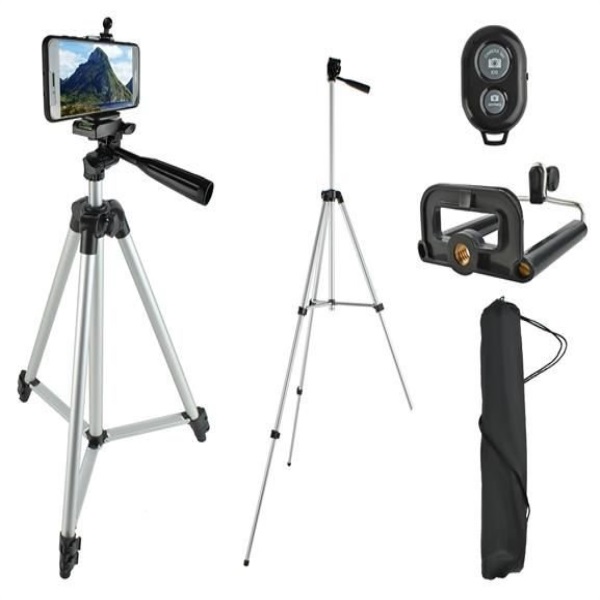 Univerzální stativ se selfie úchytem a dálkovým bluetooth ovladačem. Vhodné pro všechny typu fotoaparátů a mobilních telefonů.