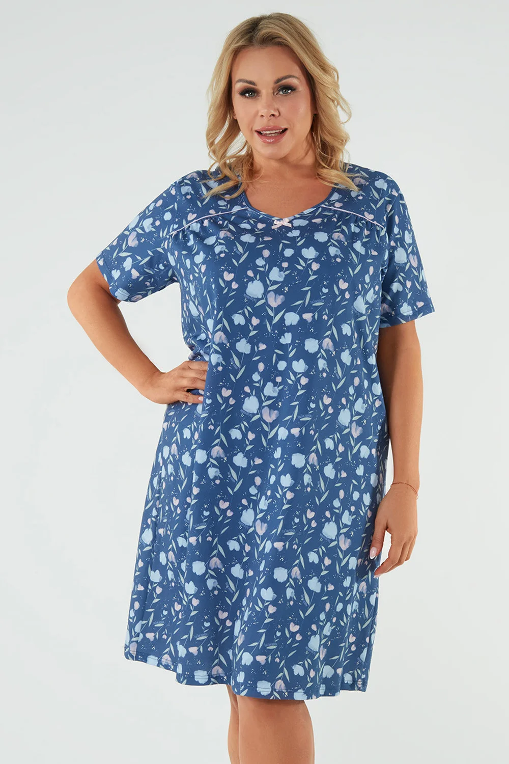 Noční košile italské módy Agalia cr. Výrobek je vyroben ze 100% bavlny. délka rukávu: krátký. délka: midi. dámský. typ výstřihu: kulatý.