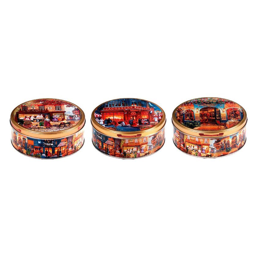 Máslové sušenky Městské motivy 150g Krásná plechová dóza naplněná máslový sušenkami. Dárek, kterým zaručeně potěšíte. Motivy posíláme náhodně, podle skladových zásob. Složení: pšeničná mouka, cukr, rostlinné oleje (palmový a canola), nejodizov. sůl, bikarbonát sodný, vanilkové aroma, máslové aroma. Výrobek může obsahovat stopy lískových oříšků, mandlí a macadamových ořechů. Alergeny: lepek. Uchovejte v chladu a suchu. Země původu: Dánsko.