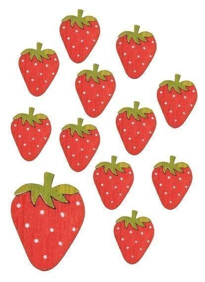 Jahody s lepíkem dřevěné 3 cm, 24ks v krabičce