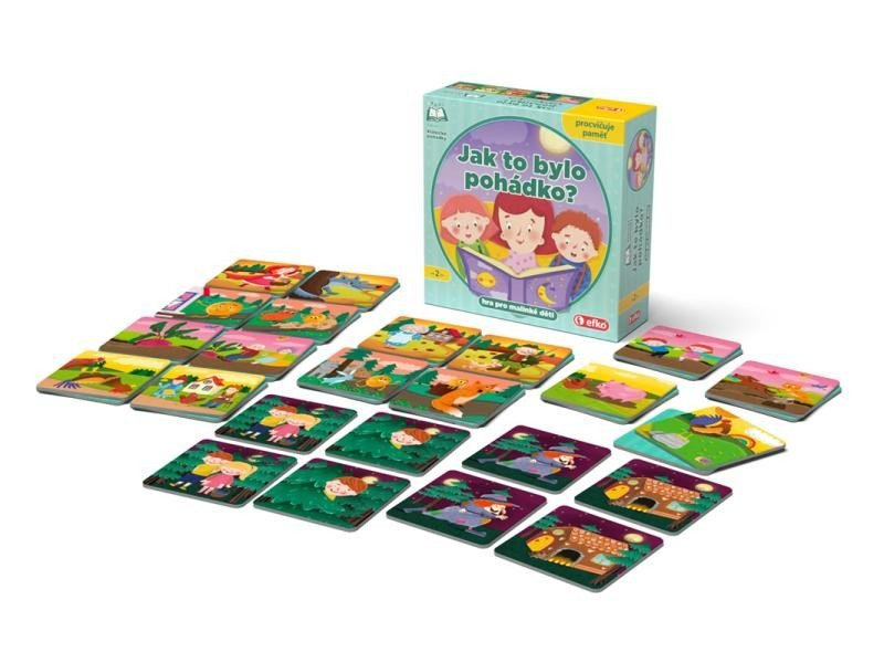 Poznáš pohádku z obrázků na kartičce? Najdeš všechny obrázky, které patří do jedné pohádky? Na 40 pevných velkých kartičkách jsou vyobrazeny scény z pěti různých pohádek, se kterými si můžeš zahrát jednoduché hry. Milé ilustrace Lucie Charvátové. Vyrobeno v ČR.