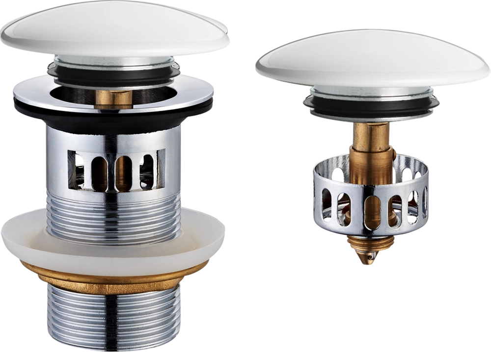 JB Sanitary Umyvadlová výpusť 5/4" s přepadem, malá zátka, BÍLÉ provedení VK09