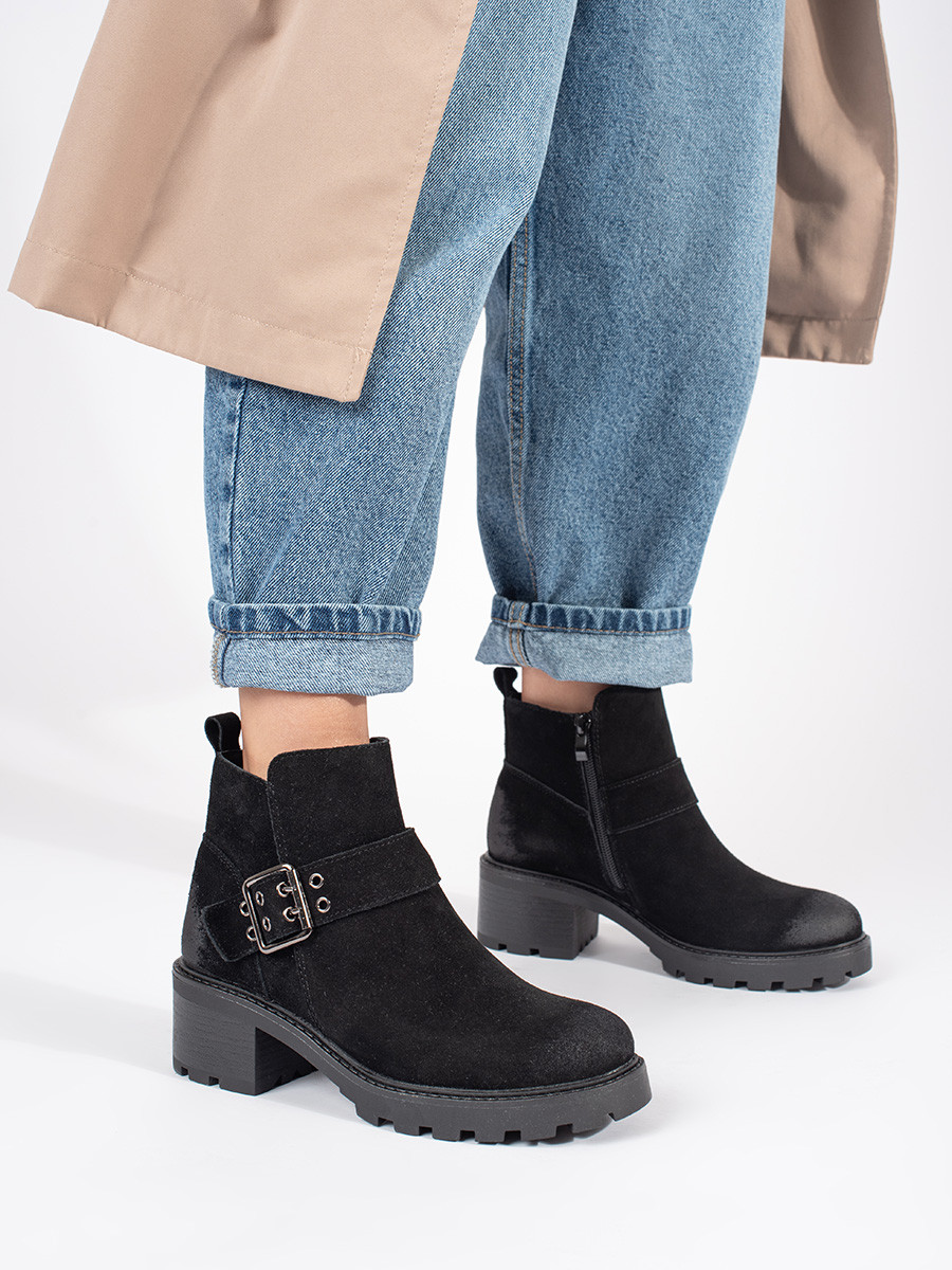 Jedinečné dámské černé kotníčkové boty na širokém podpatku 36