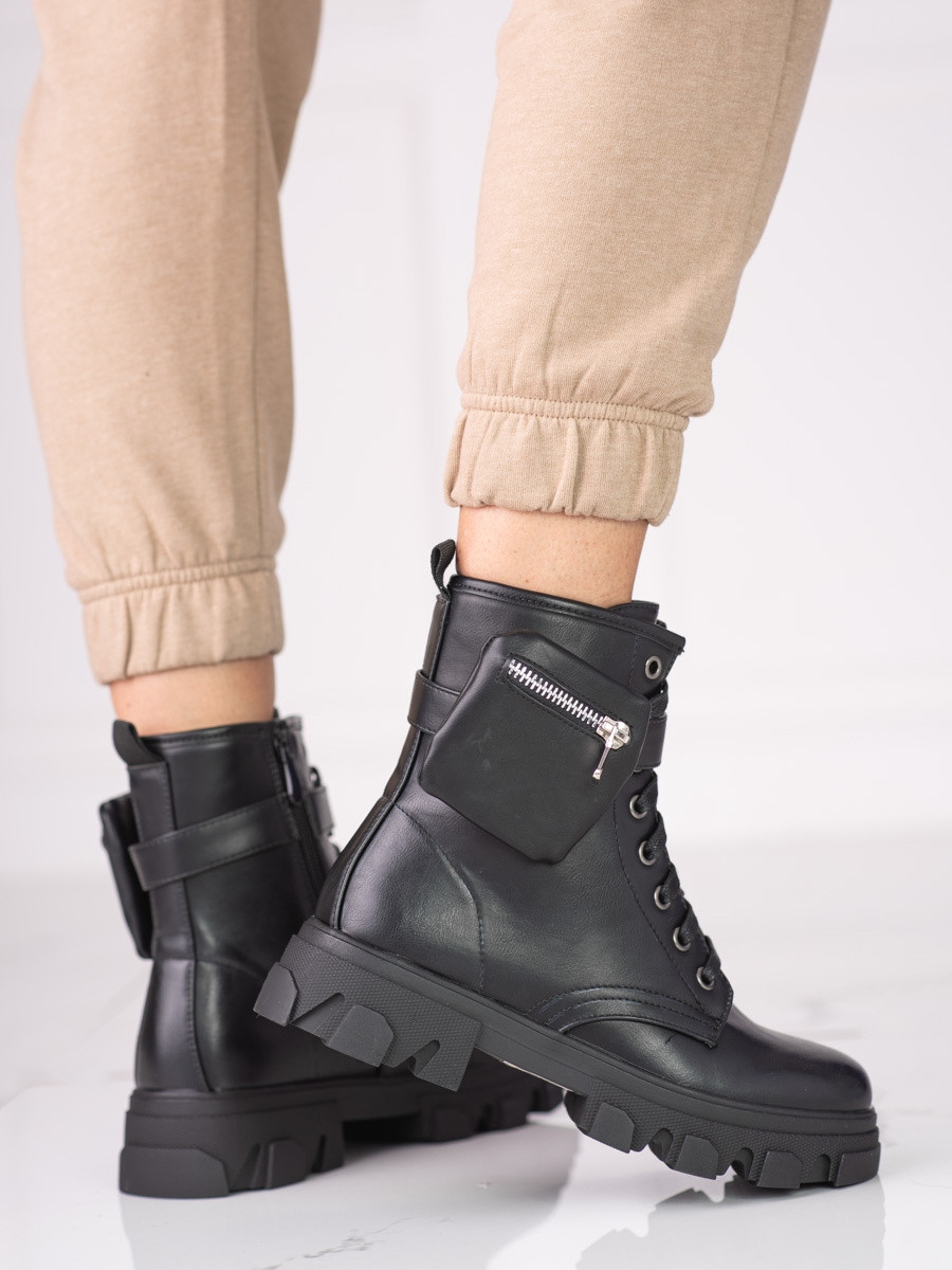 Jedinečné kotníčkové boty dámské černé na plochém podpatku 36