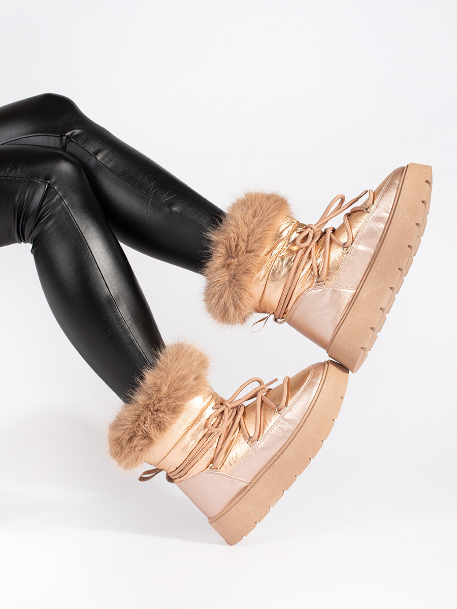 Jedinečné zlaté sněhule dámské platforma 38
