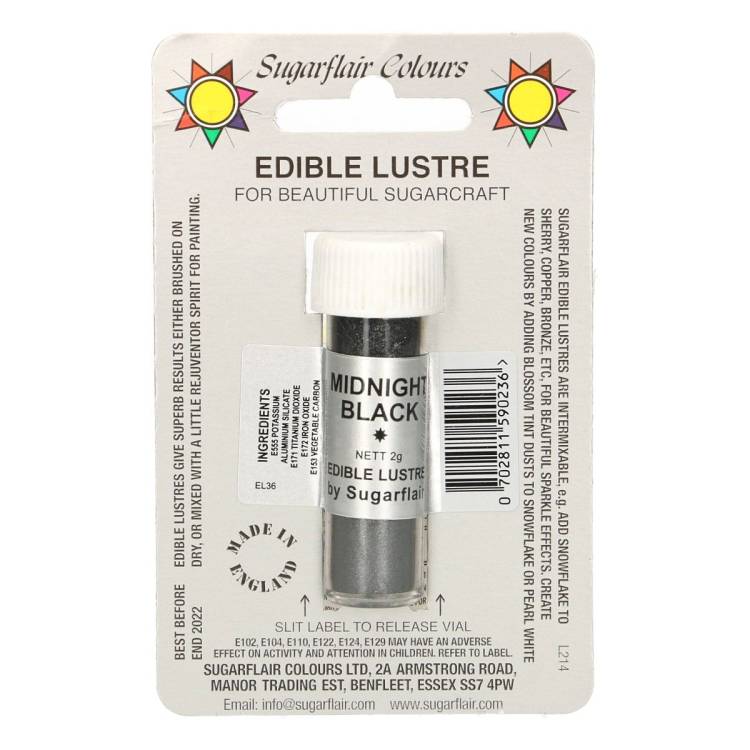 Jedlá prachová perleťová barva Sugarflair (2 g) Midnight Black (Bez E171) - Jedlá prachová perleťová barva Sugarflair (2 g) Midnight Black (Bez E171) z kategorie Dortisimo.cz | Potravinářské barvivo | Prachové potravinářské barvy | Prachové potravinářské barvy perleťové | Perleťové potravinářské barvy Sugarflair koupíte na Dortisimo.cz. EAN: 5060931890335