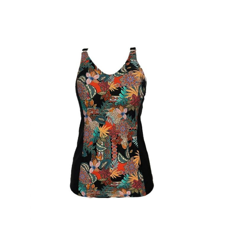 Velmi zajímavý, moderní a originální střih těchto jednodílných plavek dodá každé z našich zákaznic pocit výjimečnosti. Charakteristickým rysem modelu je prodloužený přední díl - díky tomuto zpracování plavky dokonale imitují dvoudílné plavky. Nespornou výhodou je také bohatý vzor obohacující horní díl plavek. Na bocích však zůstaly jednobarevné vsadky, které umožňují opticky zeštíhlit siluetu. Komfort používání ovlivňují také široká ramínka, podšívka a košíčky modelující poprsí. SLOŽENÍ: Polyamid 80% Elastan 20%
