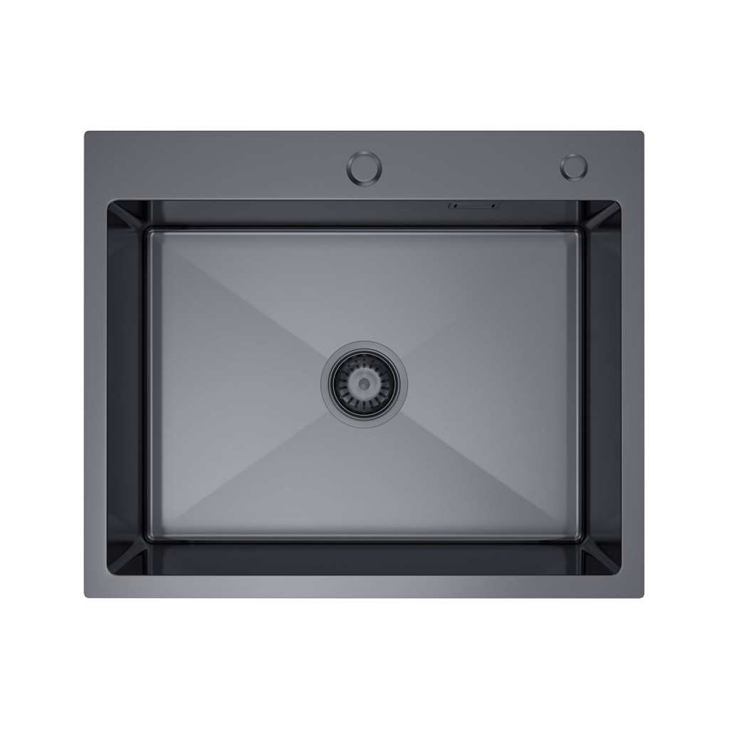 Způsob montáže: zapuštěný Materiál: nerezová ocel Barva: Grafitové PVD Rozměry dřezu: 600 mm x 500 mm x 210 mm Rozměry komory: 550 mm x 400 mm Tloušťka kovu ráfku: 3 mm Tloušťka kovu komory: 0,8 mm Otvor pro kohoutek: Ano, 35 mm Otvor dávkovače: Ano 28 mm Přepadový otvor v komoře: Ano Průměr odtoku: 114 mm