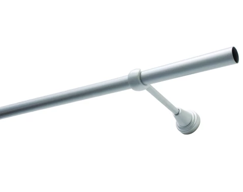 Jednoduchá záclonová souprava obsahuje jednu kovovou tyč a válcové koncovky v provedení stříbrný satén. Délka 160 cm, průměr 19 mm.