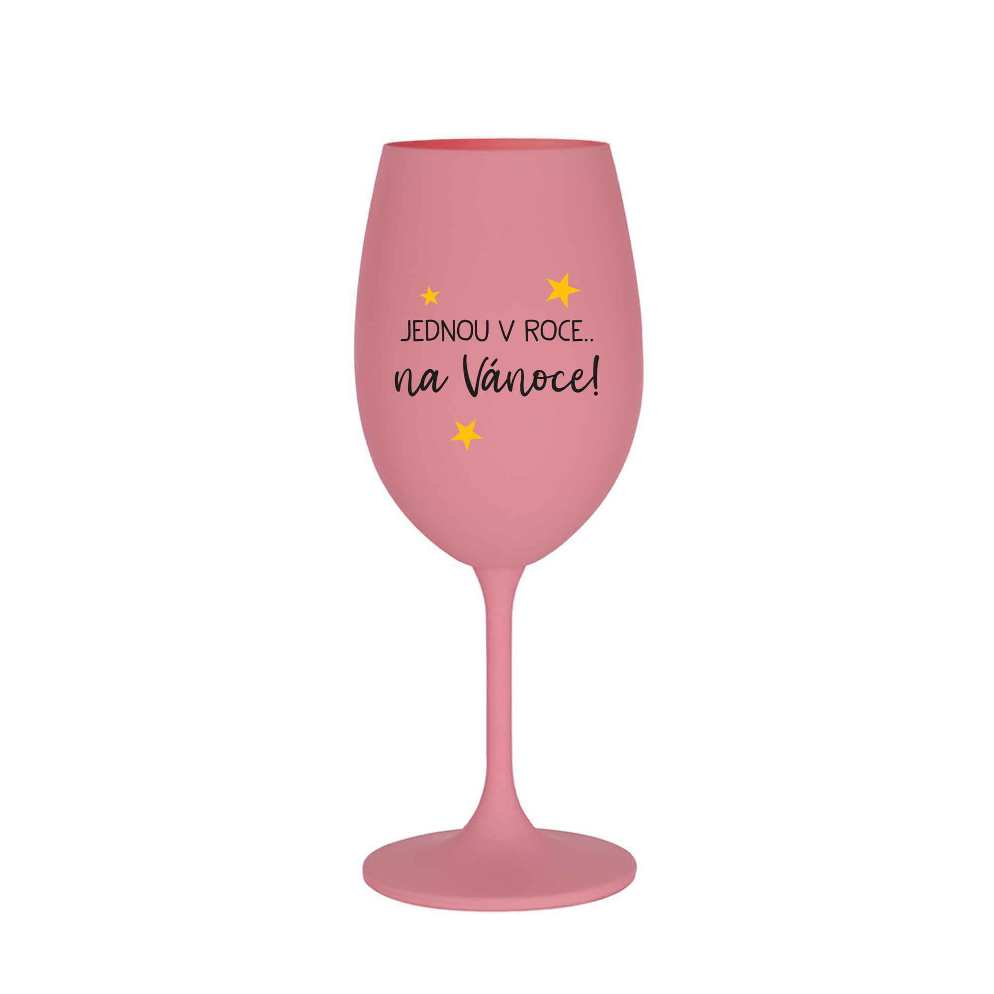 Vinná růžová sklenice s originálním motivem JEDNOU V ROCE NA VÁNOCE je krásným a osobitým dárkem, které ale využijete i Vy sami třeba ve chvílích, kdy si budete chtít zpříjemnit náročný den. Tyto originální vinné sklenice jsou totiž nejen pro výjimečné události, ale i pro běžné večery, které si chcete zpříjemnit sklenkou dobrého vína. Jistě proto potěší každého milovníka vína, i toho, kdo si umí svůj život vychutnat plnými doušky. Materiál sklo. Vyrobené s láskou v ČR