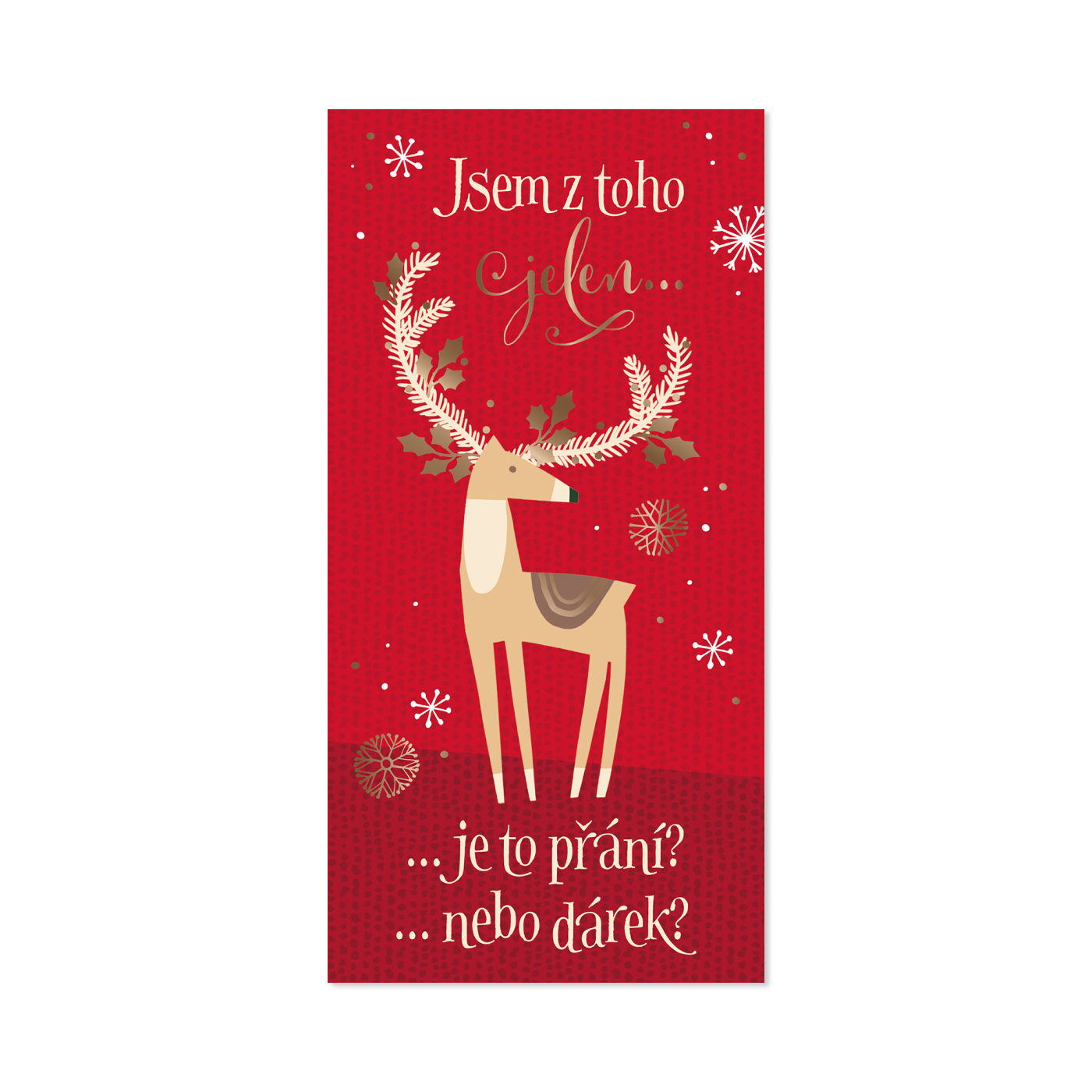 Obálka na peníze zaujme především vtipným nápisem Jsem z toho jelen...je to přání...je to dárek? Odklopte obě horní části a vložte hotovost či dárkový poukaz doprostřed. Součástí balení je i bílá obálka. Rozměry: 10 × 20 cm