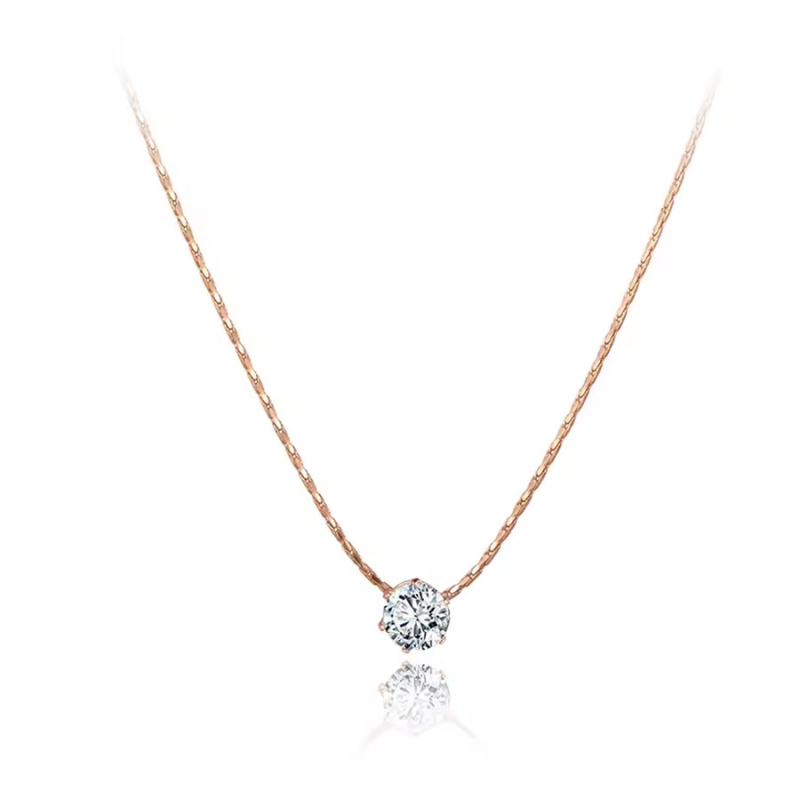 Elegantní a nadčasový – tento jemný náhrdelník se zirkonem přináší dokonalou kombinaci minimalismu a sofistikovaného stylu. Lesklý kámen zasazený do decentní korunky dodává šperku jemný třpyt, který podtrhuje jeho rafinovanost. Díky své jednoduchosti se stává skvělým doplňkem pro každodenní nošení i slavnostní příležitosti.Jemný řetízek s precizně zpracovanými články krásně přiléhá k pokožce a zajišťuje maximální komfort při nošení. Náhrdelník je povrchově upraven vrstvou 18k růžového zlata, která mu dodává luxusní vzhled a zároveň chrání jeho lesk. Křišťálově čirý zirkon vyniká svou brilancí, která rozzáří každý outfit.Díky své univerzálnosti je tento šperk ideální volbou pro ženy, které oceňují vkus a eleganci. Hodí se jak k minimalistickému stylu, tak ke zdobeným šatům, kde vynikne jeho decentní třpyt. Náhrdelník symbolizuje nadčasovou krásu a čistotu, což z něj činí nejen krásný módní doplněk, ale i významný dar pro výjimečné okamžiky. 💡Tip: Pro dosažení maximální elegance zkombinujte náhrdelník s jemnými zirkonovými náušnicemi nebo minimalistickým prstenem. Tento nadčasový šperk skvěle doplní jak večerní róbu, tak i jednoduchý denní outfit.