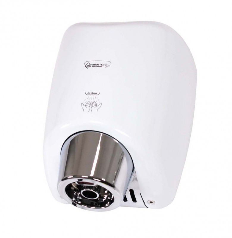 V kompaktním horkovzdušném osoušeči BOOSTER se ukrývá sušící síla tryskového vysoušeče.Konstrukce je obdobná jako u vysoušeče Jet Dryer STORM, rozdíl je však v sušící trysce, která je kruhová. Díky kovovému krytu se zaoblenými rohy je vhodný i do vysoce frekventovaných provozů.V porovnání s používáním papírových ubrousků je provoz horkovzdušného osoušeče výrazně ekonomičtější. Navíc ušetříte čas vaší uklízečky.Welt Servis spol. s r.o. drží výrobky i náhradní díly skladem a zajišťuje záruční i pozáruční servisTryska v zajímavém kruhovém designuOsoušeč rukou BOOSTER se od jiných osoušečů vyznačuje výraznou pochromovanou tryskou kruhového tvaru. Díky silnému 550 W motoru je vysušení rukou velmi rychlé.Rychlý startKonstrukce topného tělesa je navržena tak, že dochází k prakticky okamžitému nahřátí na provozní teplotu.Antivandal kovové provedení nebo ABS plastV případě, že si vyberete osoušeč rukou BOOSTER s kovovým tělem (kartáčovaná ocel nebo bílý lak), máte jistotu vysoké mechanické odolnosti. Můžete jej tak umístit do míst, kde by jiný osoušeč neobstál, jako jsou pivnice a noční kluby. BOOSTER je také dostupný ve variantě z ABS plastu bílé barvy.Vysoký hygienický standardVysoušeč se automaticky uvede do provozu po vsunutí rukou. Návštěvníci vašich toalet se tak nemusí ničeho dotýkat. Vzduch vycházející z vysoušeče je filtrován přes prachový filtr.Zaoblený design je navíc velmi jednoduchý na údržbu, osoušeč stačí pouze utřít vlhkým hadříkem s trochou saponátu.Prachový filtrOsoušeč BOOSTER je vybaven prachovým filtrem, který chrání motor před zanesením.