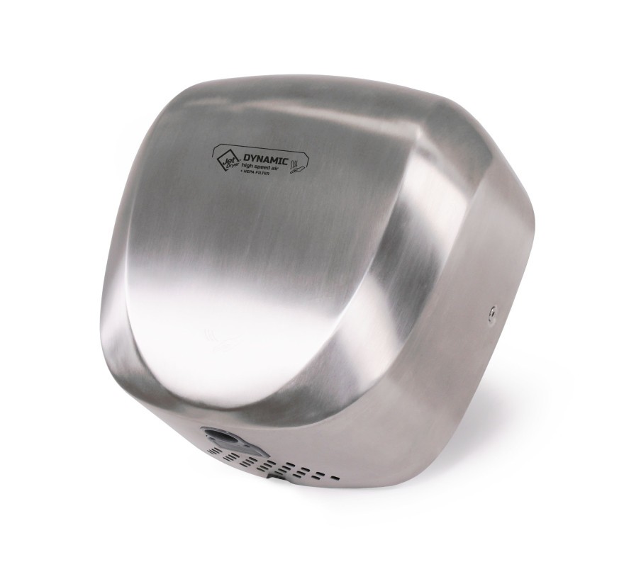 DYNAMIC je jediný osoušeč rukou z řady Jet Dryer vybavený HEPA filtrem. Silně dimenzovaný motor v prostorném kovovém krytu předurčuje tento osoušeč do provozů s velmi frekventovaným provozem. Ohřev vzduchu se spíná automaticky dle okolní teploty.Maximálně hygienický provoz díky HEPA filtruJet Dryer DYNAMIC je jediný horkovzdušný vysoušeč na trhu vybavený HEPA filtrem. Díky tomu je vzduch vyfukovaný na ruce vždy maximálně hygienický a nezávadný. HEPA filtr zachytí až 99,97% bakterii virů a dalších drobných částic. Osoušeč je naprosto bezkontaktní, aktivuje se automaticky po vložení rukou pod přístroj. Zaoblený design krytu umožňuje snadné čištění.Antivandal provedení – nerez nebo bílý lakMůžete si vybrat rovnou ze dvou povrchových úprav, leštěné nerezové oceli 304 nebo bílého laku. V obou případech je kryt osoušeče velmi odolný. Tento osoušeč můžete bez obav použít i na toaletách, kde by bylo použití  přístroje v méně odolném provedení problémové.DYNAMIC je rychlýVzduch vychází z Jet Dryer DYNAMIC rychlostí 70 m/s. Ruce jsou tak vysušeny za méně než 15 vteřin. I přes velkou rychlost vzduchu je díky použité vnitřní konstrukci osoušeč velmi tichý.Inteligentní ohřev vzduchuJet Dryer Dynamic je vybaven automatickým ohřevem vzduchu. V případě, že je teplota v místnosti nižší, než 25 °C, dojde k zapnutí topné spirály. V případě, že je teplota v místnosti vyšší, topná spirála je vypnutá a osoušeč tak šetří energii. Osoušeč rukou Dynamic je možné přenastavit do režimu trvalého ohřevu.