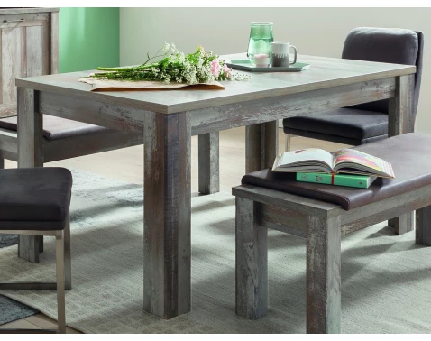 Rozkládací jídelní stůl z obývacího programu Tarragona - nechte se inspirovat zajímavým nábytkem, jehož povrch imituje vintage optiku oprýskaného dřeva.