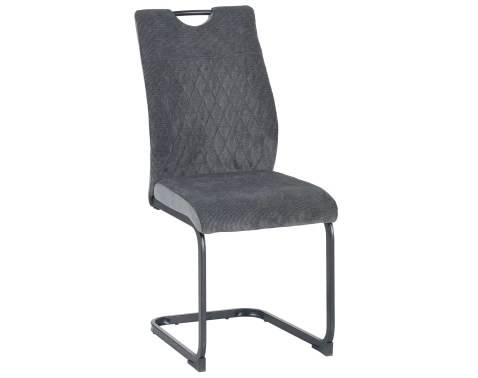 Komfortní jídelní židle na černé kovové podnoži má kosočtvercový prošev a je očalouněna šedou strukturovanou látkou v kombinaci s látkou v optice kůže.