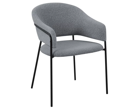 Elegantní jídelní židle na černé kovové podnoži má pohodlně zaoblené tvary. Očalouněna stylovou strukturovanou látkou buklé v barvě holubí šedá.