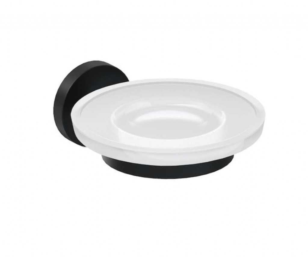 Držák se skleněnou mýdlenkou provedení: matná černá, matné sklo průměr mýdlenky: 110 mm nástěnná instalace