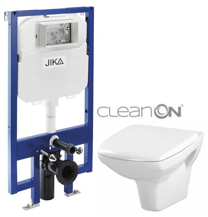 JIKA MODUL WC SYSTÉM COMPACT S RÁMEM, hloubka 8cm, pro závěsné mísy (H8946520000001) - hloubka 8 cm- upevnění do zadní zdi- předchystané otvory v rámu vhodné pro fixaci do sádrokartonových profilů- rám vhodný pro fixaci do sádrokartonových profilů- nádržka je izolovaná proti orosení- dvě volitelné rozteče upevnění klozetu- nosnost konstrukce 400kg- masivní samonosný rám z oceli- tichý chod napouštěcího ventilu- tlačítka lze v průběhu užívání vyměňovat /bez tlačítka/- možnosti splachování 2/4 l, 3/4,5 l a 3/6 l- izolované koleno k zabránění rosení modulu a vodních cest- odpadní koleno DN 90/110- upevnění do podlahy s možností nastavitelné výšky Pozn.: tovární nastavení splachování podomítkového modulu je 3/6l. Součástí modulu není tlačítko, to je možno vybrat a doobjednat. ZÁVĚSNÁ MÍSA CARINA NEW CLEANON (K31-046) Šířka: 35 cm Hloubka: 52,5 cm Barva: bílá WC závěsná mísa CARINA NEW CleanOn elegantního vzhledu s horizontálním odpadem, funkcí splachování 2,5/5, 3/5l. WC mísa nemá límec jako v tradičních mísách, kde se hromadí nečistoty a bakterie. SEDÁTKO CARINA DUROPLAST ANTIBACTERIAL (K98-0068) Rozměr: 36,4 x 43,6 cm Barva: bíla duroplastové standardní zavírání antibakteriální vlastnosti