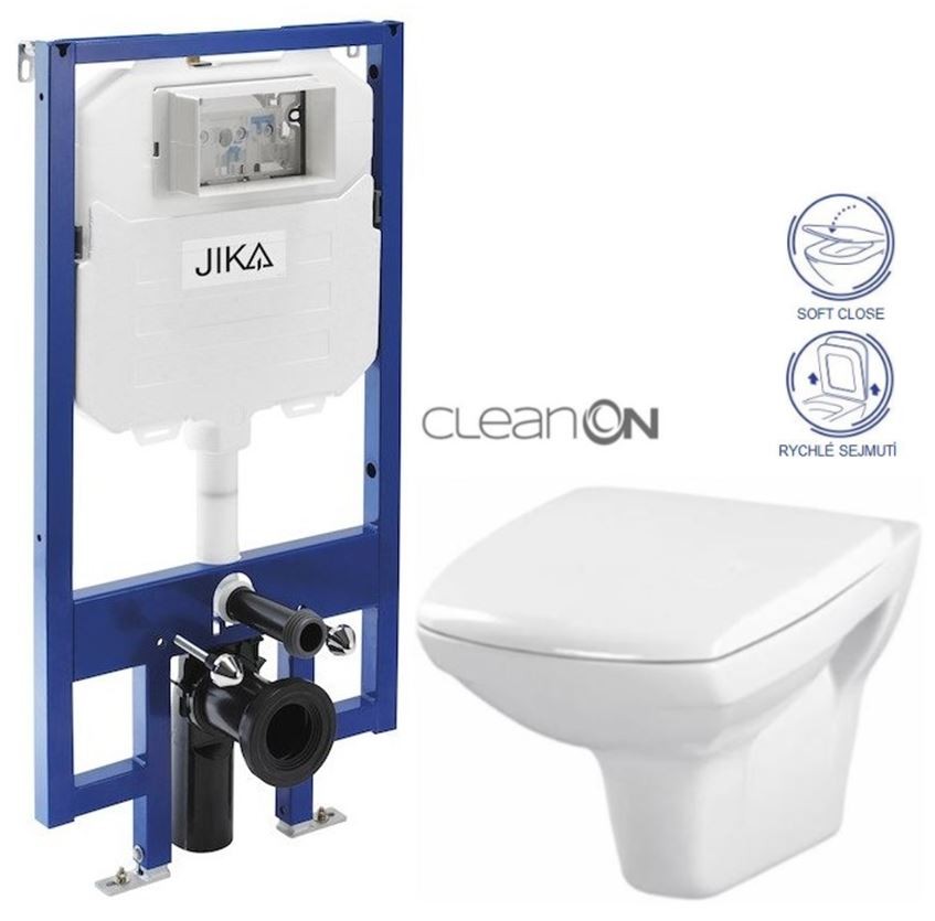 JIKA MODUL WC SYSTÉM COMPACT S RÁMEM, hloubka 8cm, pro závěsné mísy (H8946520000001) - hloubka 8 cm- upevnění do zadní zdi- předchystané otvory v rámu vhodné pro fixaci do sádrokartonových profilů- rám vhodný pro fixaci do sádrokartonových profilů- nádržka je izolovaná proti orosení- dvě volitelné rozteče upevnění klozetu- nosnost konstrukce 400kg- masivní samonosný rám z oceli- tichý chod napouštěcího ventilu- tlačítka lze v průběhu užívání vyměňovat /bez tlačítka/- možnosti splachování 2/4 l, 3/4,5 l a 3/6 l- izolované koleno k zabránění rosení modulu a vodních cest- odpadní koleno DN 90/110- upevnění do podlahy s možností nastavitelné výšky Pozn.: tovární nastavení splachování podomítkového modulu je 3/6l. Součástí modulu není tlačítko, to je možno vybrat a doobjednat. WC závěsná mísa CARINA NEW CleanOn (K31-046) Šířka: 35 cm Hloubka: 52,5 cm Barva: bílá WC závěsná mísa CARINA NEW CleanOn elegantního vzhledu s horizontálním odpadem, funkcí splachování 2,5/5, 3/5l. WC mísa nemá límec jako v tradičních mísách, kde se hromadí nečistoty a bakterie. Záchodové duroplastové sedátko CARINA SOFT-CLOSE (K98-0069) WC sedátko s pomalým zavíráním SOFT CLOSE, s jednoduchým sejmutím a upevněním sedátka EASY OFF. 36,4 x 44cm