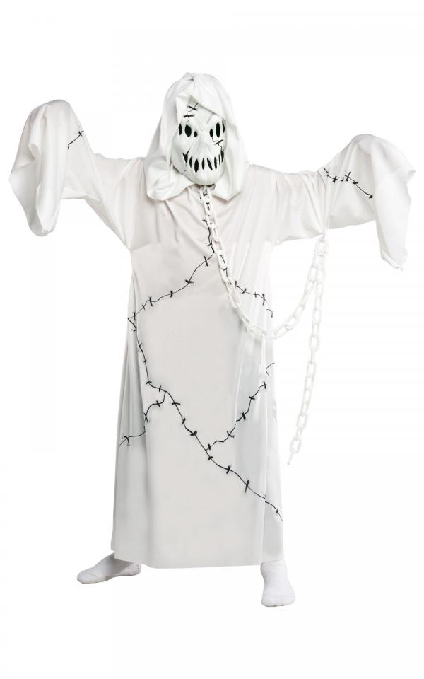 Buu! Tenhle dětský kostým – Duch udělá z vašeho prcka neodolatelného strašidla, které se neztratí na žádné párty! Kostým obsahuje dlouhou bílou róbu s kapucí, strašidelnou masku a stylový plastový řetěz pro ten správný efekt.