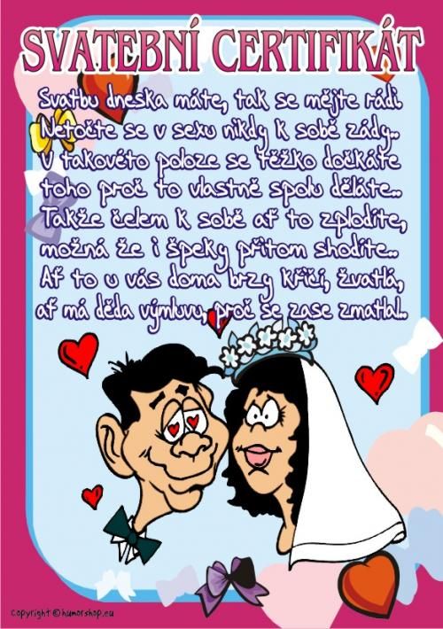 Joke21 Svatební certifikát – originální dar pro novomanžele