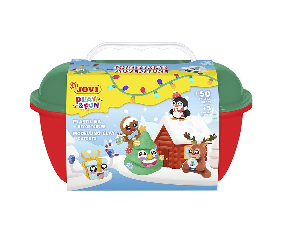 PLAY&FUN - Sada Christmas Adventure - Limitovaná vánoční edice - 24 tyčinek plastelíny 15 g + modelovací nástroje + vystřihovánky. Nejznámější modelovací hmota na světě je také zábavnou vzdělávací hrou, se kterou můžete strávit hodiny vytvářením postav a kouzelných světů. Objevte barevnou krabičku Play&Fun a vytvořte jedinečné postavičky z plastelíny. Viděli jste tohoto roztomilého soba? Vytvořte kuličky, přidejte vystřihovánky, které jsou součástí sady, a bavte se vytvářením vlastního vánočního světa plného kouzel. Hrajte si znovu a znovu s širokou škálou barevných plastelin bez lepku, na rostlinné bázi, které nevysychají.