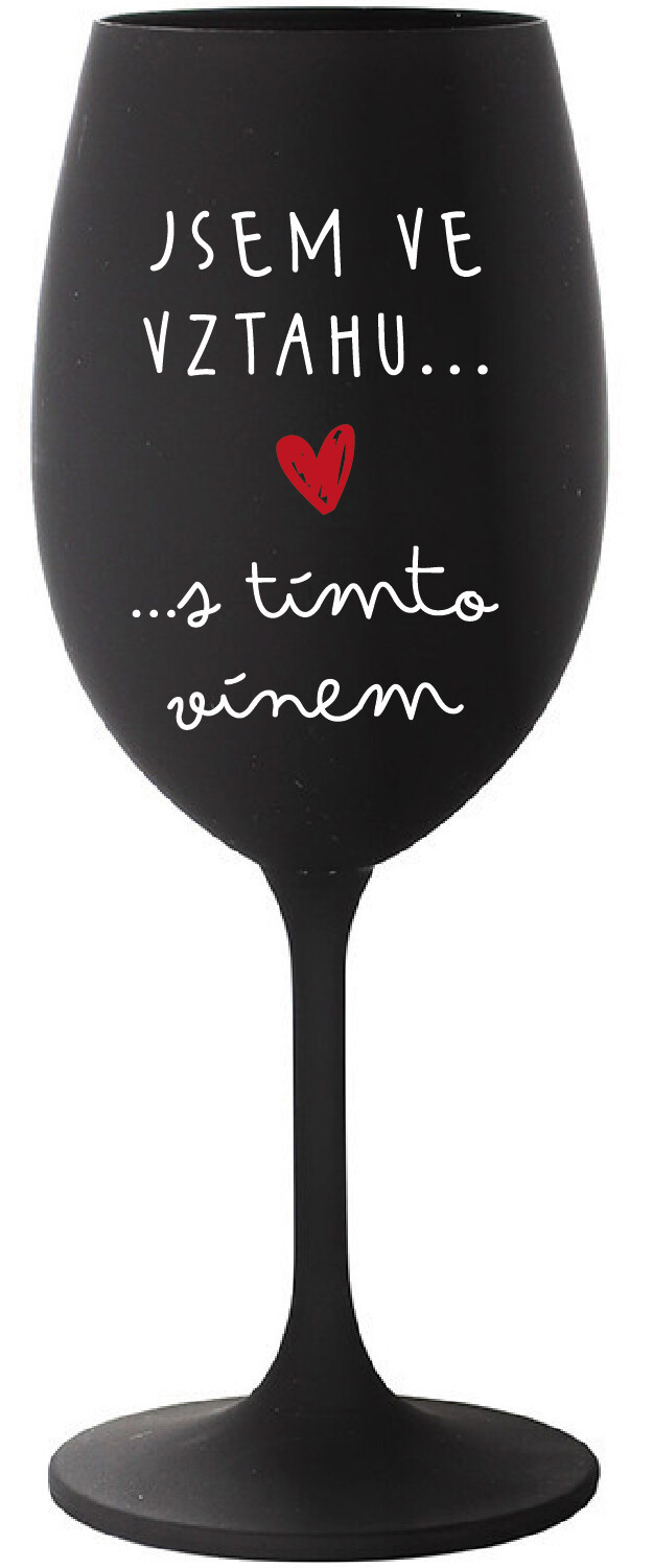 Vinná černá sklenice s originálním motivem JSEM VE VZTAHU S TÍMTO VÍNEM je krásným a osobitým dárkem, které ale využijete i Vy sami třeba ve chvílích, kdy si budete chtít zpříjemnit náročný den. Tyto originální vinné sklenice jsou totiž nejen pro výjimečné události, ale i pro běžné večery, které si chcete zpříjemnit sklenkou dobrého vína. Jistě proto potěší každého milovníka vína, i toho, kdo si umí svůj život vychutnat plnými doušky. Materiál sklo. Vyrobené s láskou v ČR