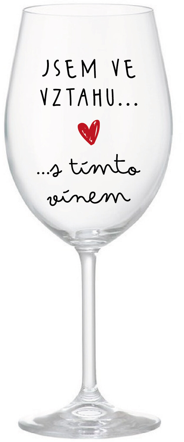 Vinná čirá sklenice s originálním motivem JSEM VE VZTAHU S TÍMTO VÍNEM je krásným a osobitým dárkem, které ale využijete i Vy sami třeba ve chvílích, kdy si budete chtít zpříjemnit náročný den. Tyto originální vinné sklenice jsou totiž nejen pro výjimečné události, ale i pro běžné večery, které si chcete zpříjemnit sklenkou dobrého vína. Jistě proto potěší každého milovníka vína, i toho, kdo si umí svůj život vychutnat plnými doušky. Materiál sklo. Vyrobené s láskou v ČR