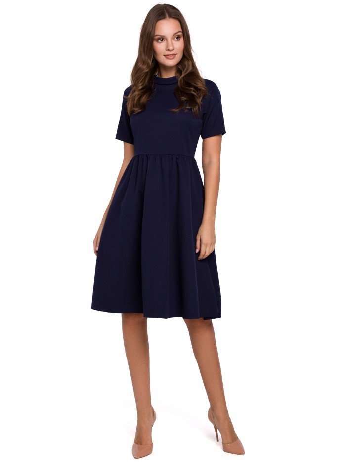 K028 Šaty s ohrnutým výstřihem - tmavě modré EU M