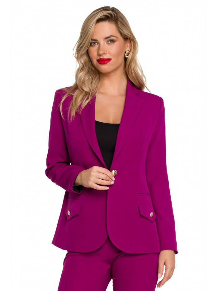 Domů Oblečení a móda Dámské oblečení Dámská saka K141 Sako s dvojitými kapsami s klopou - rubínová barva EU M
