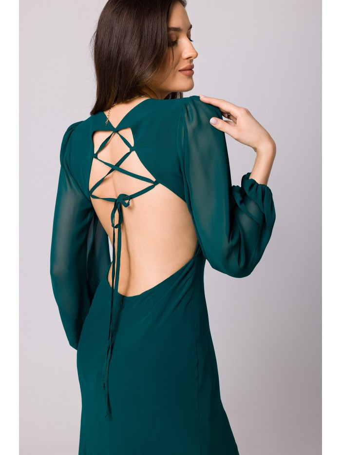 K166 Šifonové šaty s otevřenými zády - lahvově zelené EU L