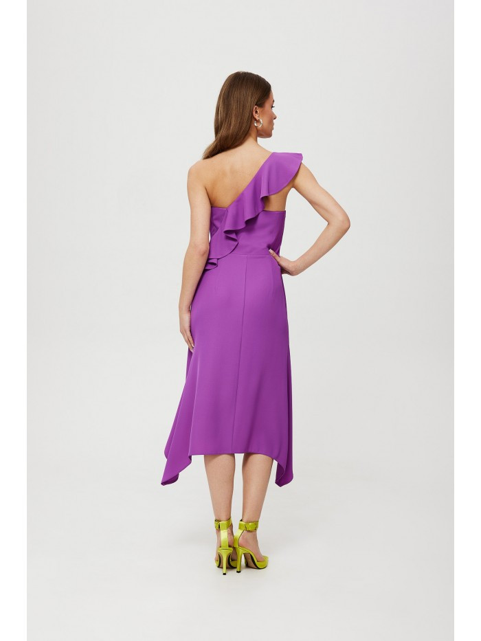 Domů Oblečení a móda Dámské oblečení Dámské šaty K185 Šaty s volánky na jedno rameno - levandulová barva EU S