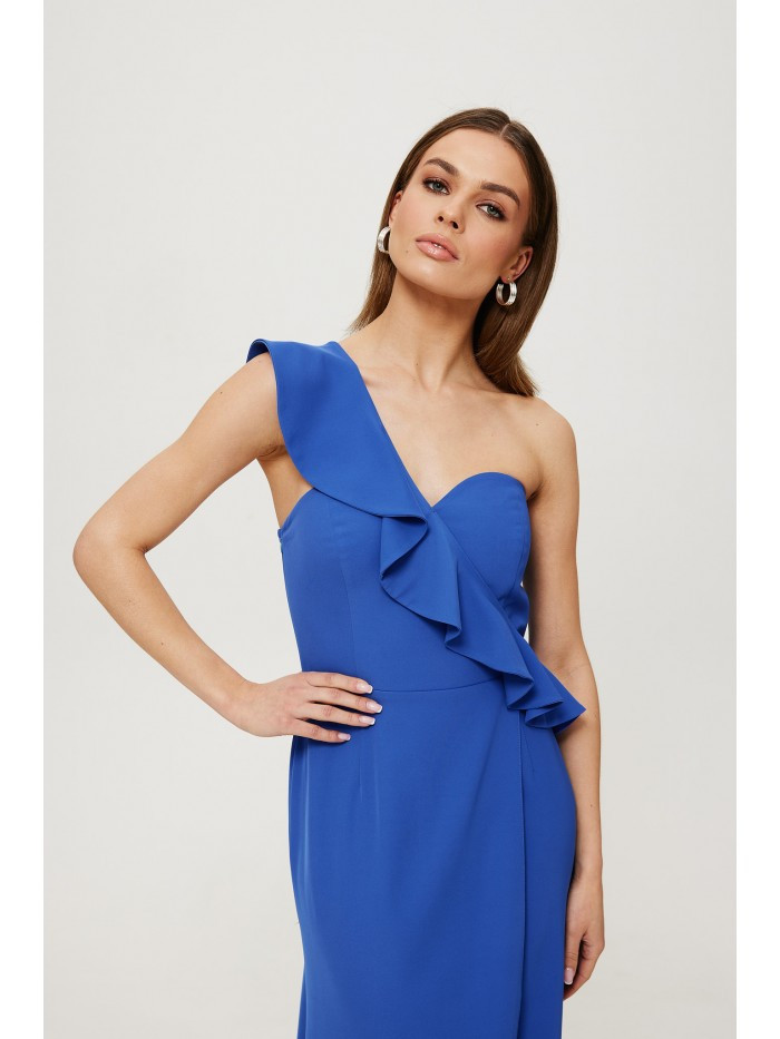 K185 Šaty s volánky na jedno rameno - modré EU S