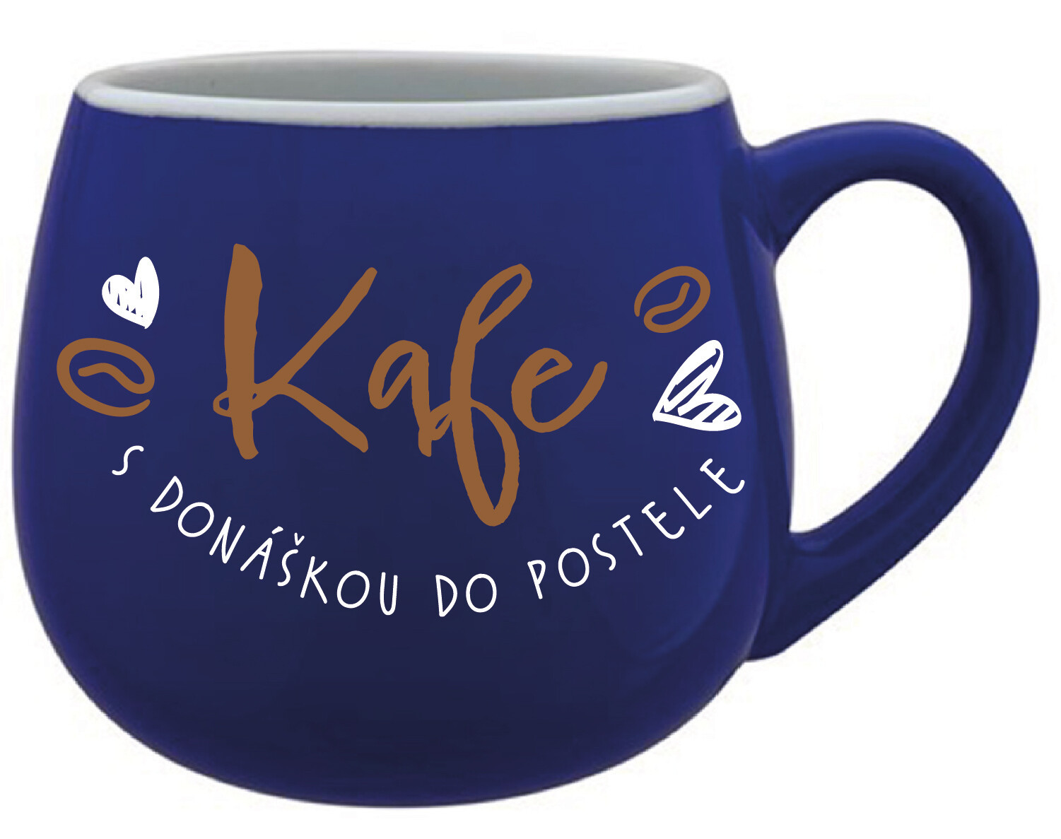 KAFE S DONÁŠKOU DO POSTELE - modrý keramický hrníček 300 ml