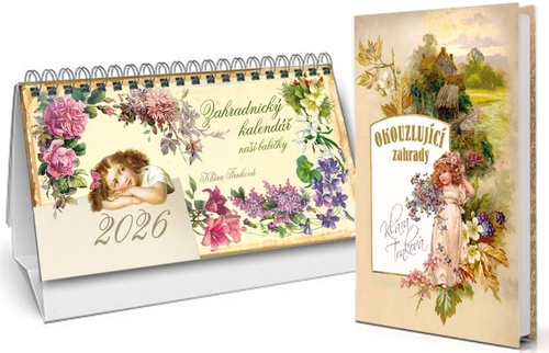 Kalendář 2026 Zahradnický 96 stran, 17 × 24 cm, kroužková V Zahradnickém kalendáři 2026 najdete praktické rady a tipy pro každého, kdo má rád práci na zahradě – ať už pěstujete zeleninu, bylinky, ovocné stromky nebo květiny. Kalendář vás provede celým rokem a připomene, kdy je vhodný čas na setí, sázení, přesazování či sklizeň. Rady jsou podány jazykem našich babiček s jednoduchou moudrostí, která neztrácí půvab ani po letech. Nechybí obrázky a koláže s motivy z přírody, které kalendáři dodávají osobitou poetiku Studia Trnka. ---------------------------- Okouzlující zahrady 80 stran, 12 × 17 cm, vázaná Knížka má být povzbuzením k tomu, abychom se dokázali naladit na svůj kousek země a proměnit jej v místo, kde si plníme sny a tvoříme vlastní ráj. Slovo zahrada u nás odkazuje k původnímu významu „ohrazená plocha“. V dávné Persii se užívalo slovo pairidaeza, ze kterého vzešlo anglické paradise – tedy ráj, rajská zahrada. Nejbližší zeleň, naše osobní příroda kolem domu či chalupy, odráží způsob života i náladu svého majitele, jeho potřeby i přání.