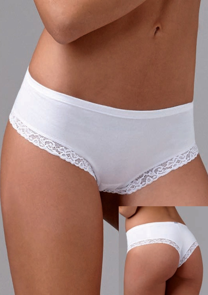 Dámské kalhotky šortkového střihu od značky Lovelygirl. Kalhotky jsou vyrobeny z bavlny a z modalu. Díky tomuto složení kalhotky zaručují barevnou a tvarovou stálost a jsou velmi příjemné na nošení. Na přední i zadní části je lemována z elastické a velmi příjemné krajky. Kalhotky mají na zadní části uprostřed šev pro komfortnější nošení a také proto jsou nejprodávanější typ z bavlněných kalhotek. Materiálové složení: 45% CO, 45% MO 10% EL