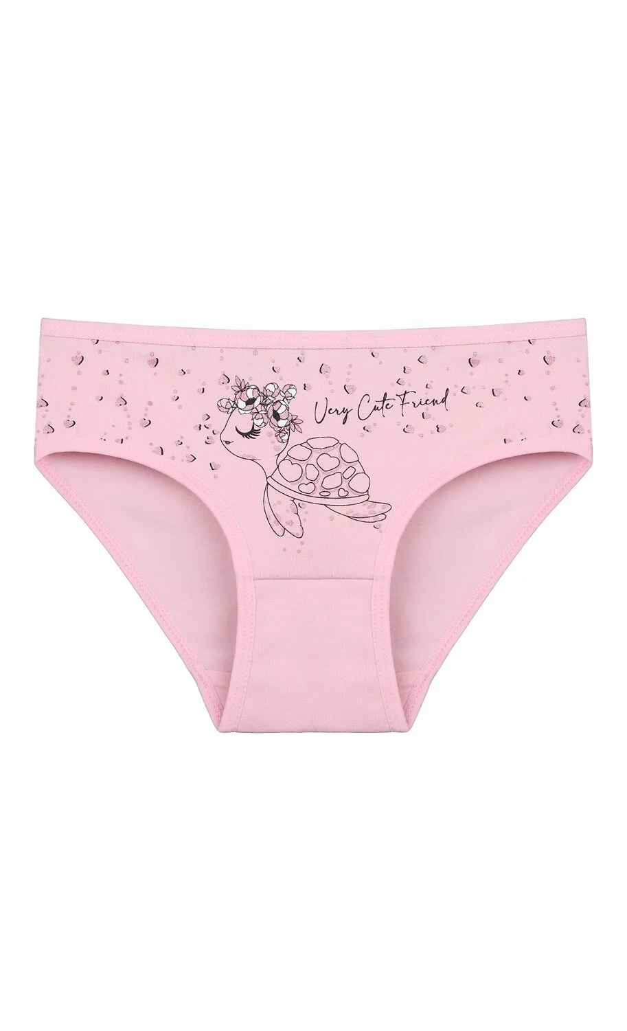 Dívčí bavlněné kalhotky - ozdobný potisk na přední straně - baleno po třech kusech v polyetylenovém sáčku v různých barevných kombinacích - dostupné barvy: růžová, ecru, modrá, fialová Složení: 95 % bavlna, 5 % elastan