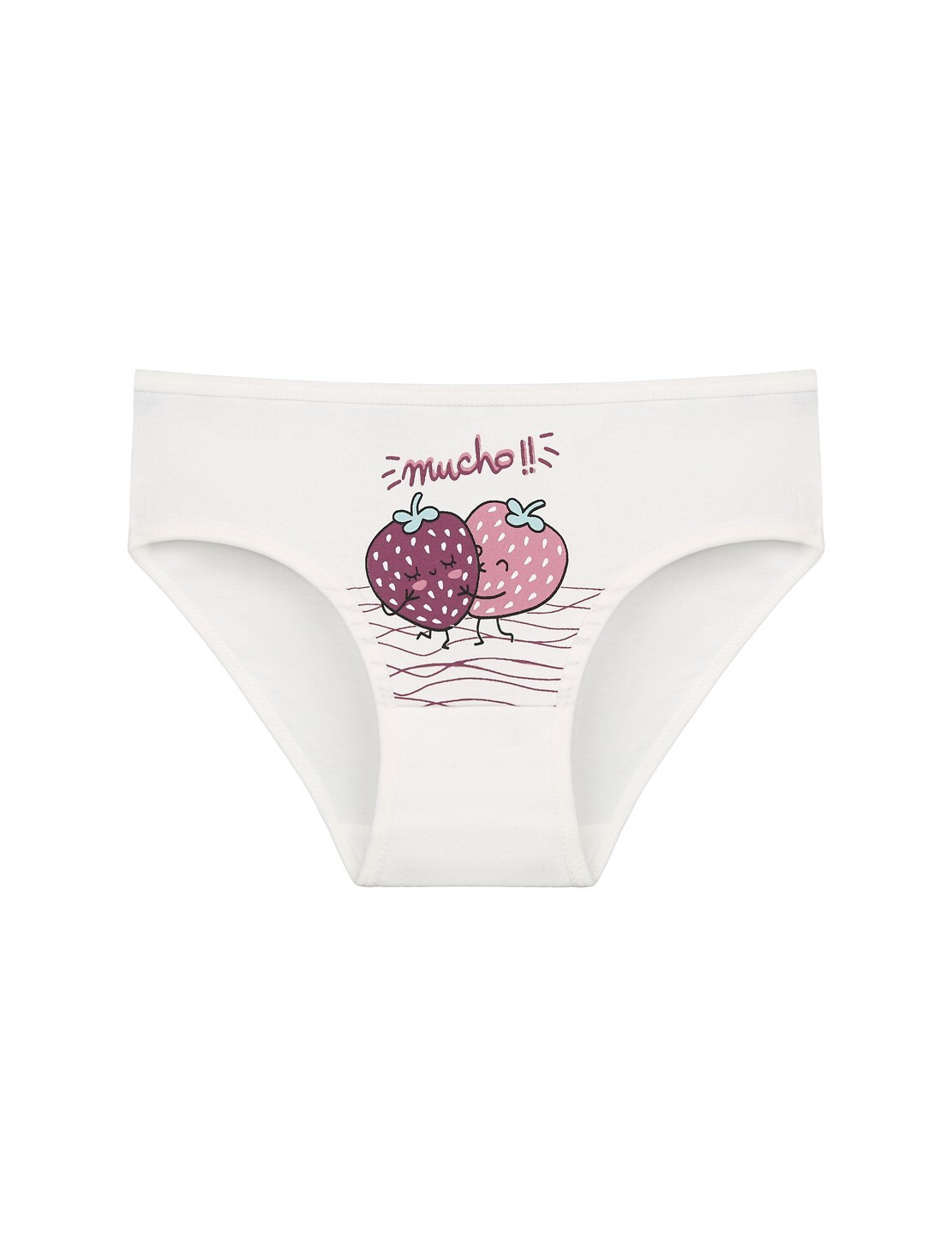 Dívčí bavlněné kalhotky - potisk medvídka na přední straně - dostupné barvy: vínová, růžová, krémová, fialová, růžová, broskvová - baleno po třech kusech v polyetylenovém sáčku v různých barevných kombinacích Složení: 95 % bavlna, 5 % elastan