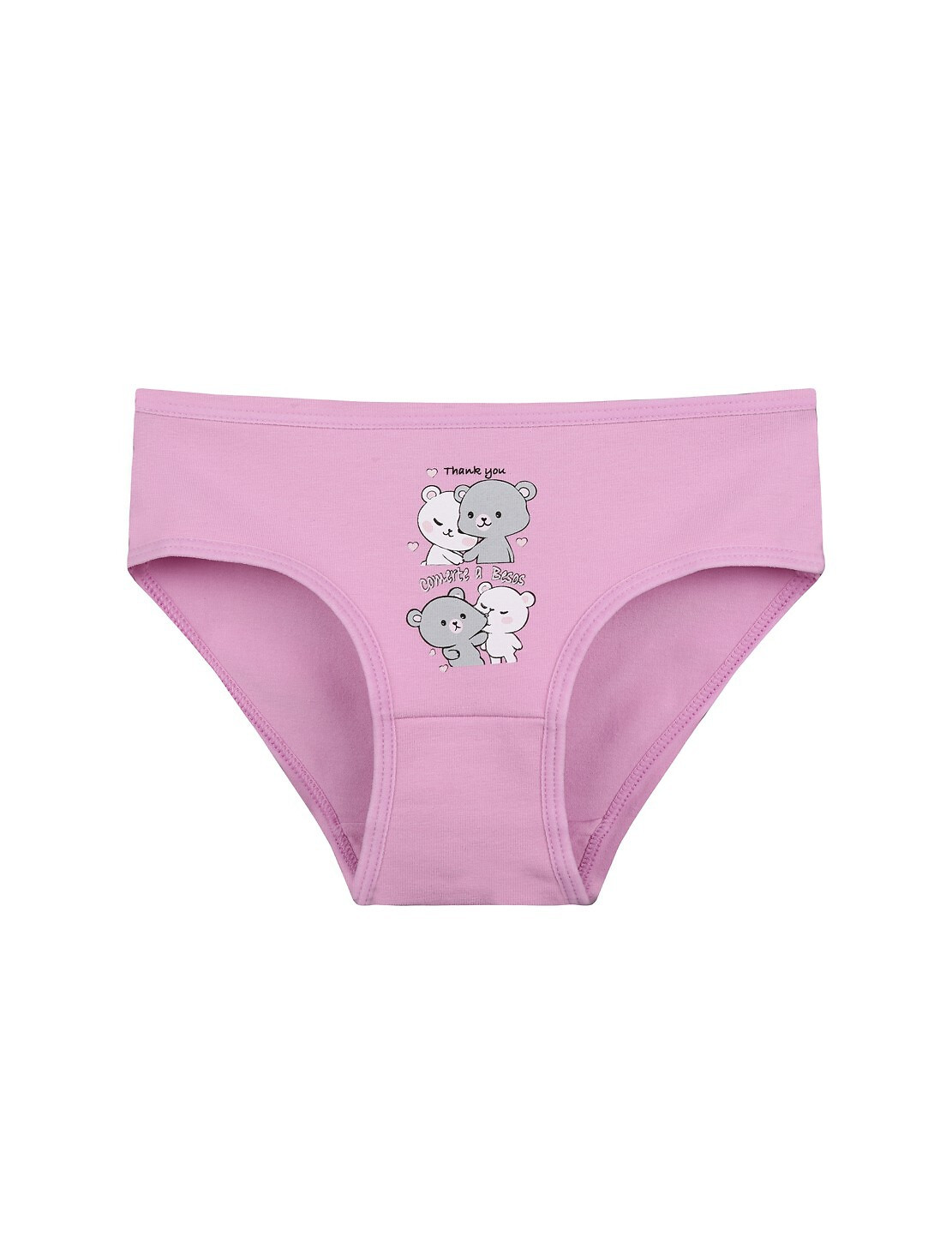 Dívčí bavlněné kalhotky - potisk medvídka na přední straně - dostupné barvy: modrá, růžová, modrá, fialová, růžová - baleno po třech kusech v plastovém sáčku v různých barevných kombinacích Složení: 95 % bavlna, 5 % elastan