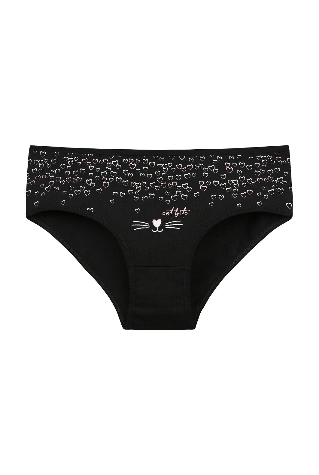 Bavlněné kalhotky pro dospívající dívky - jemný potisk na přední straně - baleno po dvou v plastovém sáčku - dostupné barvy: černo-šedý melír Složení: 95 % bavlna, 5 % elastan