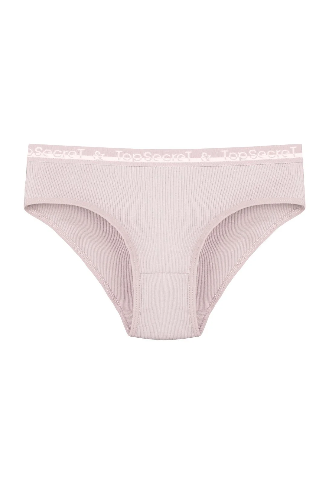 Bavlněné kalhotky pro dospívající dívky - jemně žebrovaný úplet - plochý elastický pas s ozdobným nápisem - baleno po dvou v plastovém sáčku v různých barevných kombinacích - dostupné barvy: růžová, modrá, béžová, šalvějová, cappuccino Složení: 95 % bavlna, 5 % elastan