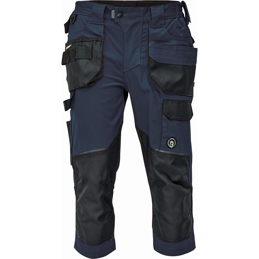 Kalhoty 3/4 DAYBORO navy - pánské pracovní 3/4 kalhoty - elastický inovativní materiál TRIFIBETEX - ergonomický střih - snížený pružný pas - odolné trojité prošití nohavic a sedu - zesílená oblast kolen s možností vkládání kolenních výztuh - prostorné multifunkční přední kapsy s poutky na nářadí - 2 zadní kapsy s klopou zesílené Oxfordem - stehenní kapsa na telefon s klopou a zapínáním na suchý zip - kapsa na metr a nůž - poutko na kladivo - "D" kroužek - poutko na nářadí v pase - originální zpracování zapínání kalhot - reflektivní prvky v barevném odstínu