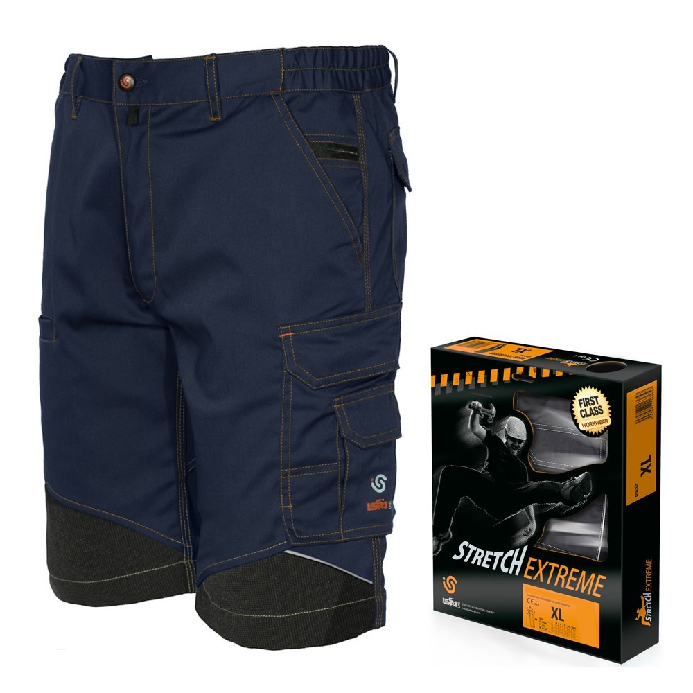Kalhoty bermudy stretch 8834B modro-černé Technické bermudy s anti-odvětrem textilní vložky, pastuky a elastický materiál. Produkt umožňuje pohodlí a zároveň vypadají stejně jako kalhoty ze sportovního světa. K dispozici je 9 kapes, včetně držáku mobilního telefonu. Trojité prošívání a obzvláště odolná tkanina zaručuje vynikající odolnost i při nejtěžší práci. Dodáváno samostatně v zavěšené krabici. Složení: 260 g / m2 - 65% poly / 32% bavlna / 3% spandex barva : modro-černá Velikost : S-3XL