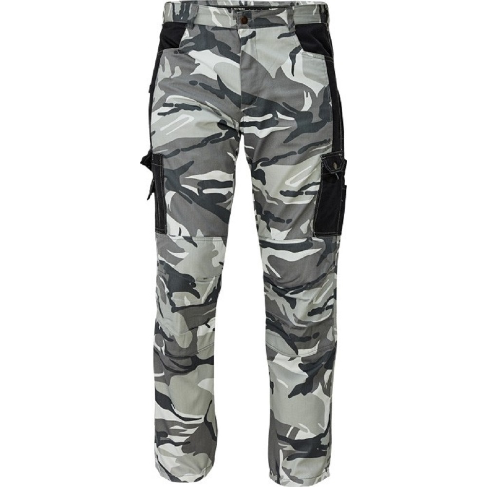 Kalhoty CRAMBE šedé camouflage, pánské do pasu, 190g/m2 - pánské kalhoty z lehkého T/C twillu 190 g/m2 - 2 zadní nakládané kapsy - 2 boční kapsy a 2 multifunkční kargo kapsy - zesílená část kolen - skvěle paadnoucí střih - praktický maskáčový vzor - materiál: 65% polyester, 35% bavlna - velikosti: S, M, L, XL, XXL, 3XL - barva: šedá cemouflage GS