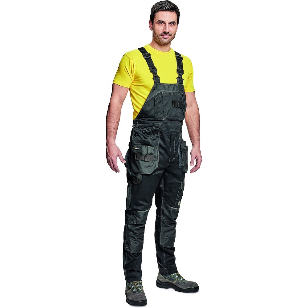 Kalhoty DAYBORO pánské s laclem černé-antracit - pánské pracovní kalhoty s laclem - elastický inovativní materiál TRIFIBETEX - ergonomický střih - pružný pas - odolné trojité prošití nohavic a sedu - zesílená oblast kolen s možností vkládání kolenních výztuh - prostorné miltifunkční přední kapsy s poutky na nářadí - 2 zadní kapsy s klopou zesílené Oxfordem - stehenní kapsa na telefon s klopou a zapínáním na suchý zip - kapsa na metr a nůž - poutko na kladivo - "D" kroužek - poutko na nářadí v pase - reflektivní prvky v barevném odstínu - nastavitelná délka nohavic Velikost: 46-64 Materiál: 62 % bavlna, 3 % elastan, 35 % polyester Barva: černé-antracit