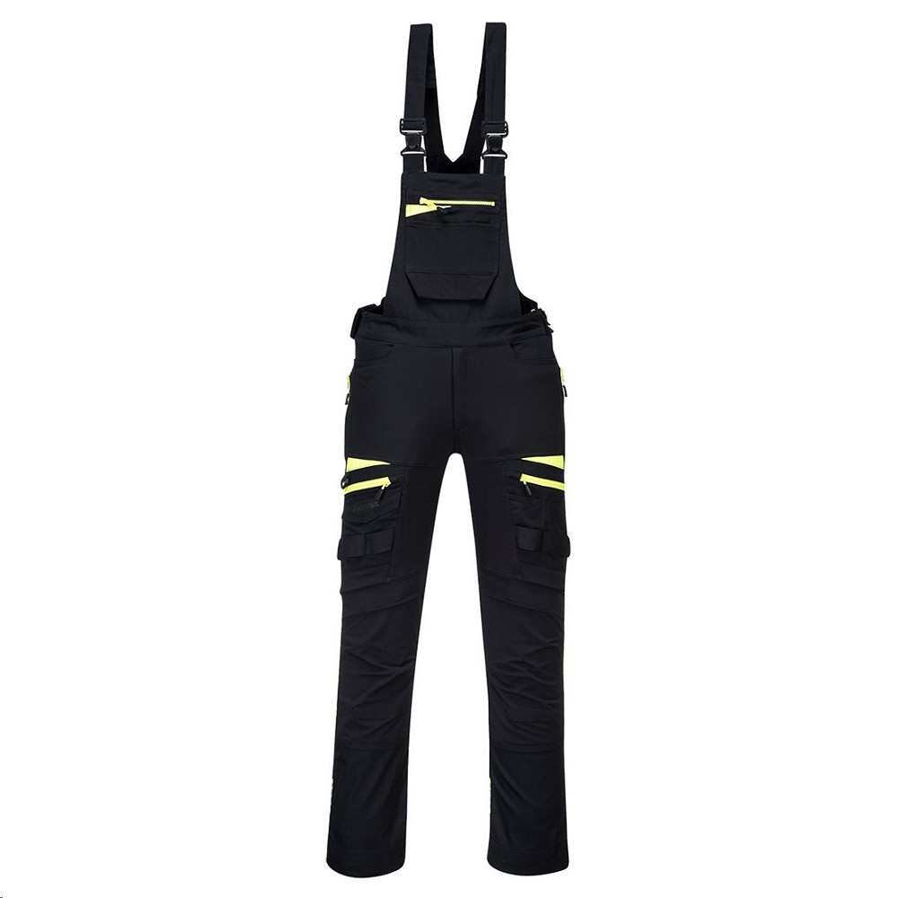Kalhoty DX441 pracovní černé s laclem Portwest Pracovní laclové kalhoty DX4 jsou navrženy pro výjimečné pohodlí, flexibilitu a ochranu. Vyrobeno pomocí dynamických 4X elastických tkanin, které zajišťují snadnější pohyb. Vyrábí se s mnoha inovativními funkcemi, včetně kontrastního obložení, reflexních obložení, víceúčelových kapes, rozšiřitelných lemů, předhnutých horních kapes a nastavitelných ramenních popruhů. Vysoký zadní pas s boční pružností zajišťuje ochranu ve všech pracovních polohách. - 4cestný stretchový materiál pro volnost pohybu a zvýšené pohodlí - kolenní vložky jsou součástí kalhot s laclem - lehká a flexibilní reflexní páska HiVisTex Pro zvyšuje viditelnost - 14 kapes pro uložení věcí - dvoustupňové kolenní kapsy umožňují dvě možnosti umístění - velká zadní kapsa na zip pro více možností ukládání Vnější tkanina: 93% polyester, 7% Elastan 270g Dodatečné info ke kontrastní tkanině: Kontrastní látka: 65% polyester, 35% bavlna Ripstop Weft Stretch 235g Zesílení kolen: 88% nylon, 12% elastan 275g